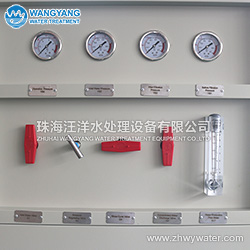 2. 低压停机保护,当预处理供水不足引起高压泵进水压力低于0.05MPa时,会自动停机保护动作并发出声光报警。 3. 配置有手动多路阀,多介质过滤器在压差达到0.1MPa 时进行清洗。 4. 配置反渗透膜清洗系统,可对反渗透膜组件进行物理清洗、化学清洗和加注保护液。 |