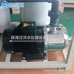 进水泵:SUS316,南方泵(CNP) 多介质过滤器:Ø250x1300mm,FRP 保安过滤器:10" x 10μm,UPVC 精密过滤器:10" x 5μm,UPVC