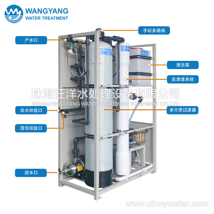 ● 高效反渗透膜,脱盐率高达99.5%,抗污染能力强,产水水质稳定。