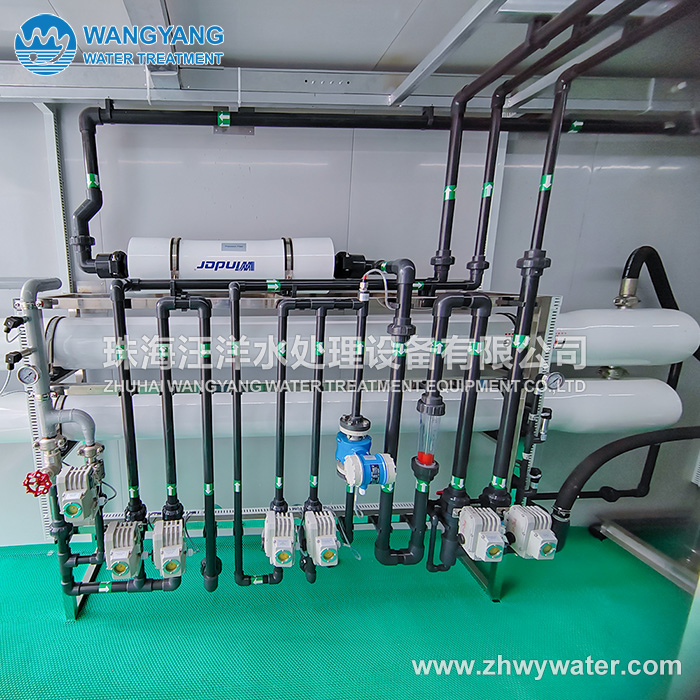 ● 高效反渗透膜,脱盐率高达98.5%,抗污染能力强,产水水质稳定。