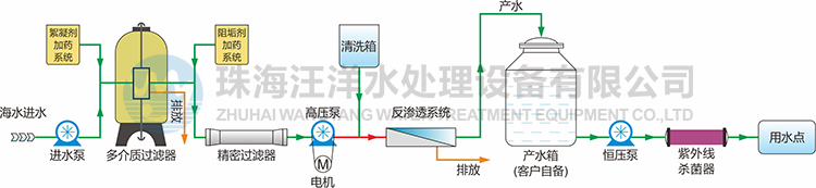 该系统能够有效地去除海水中的无机盐、重金属离子、有机物细菌及病菌等有害成分,将海水淡化为符合生活饮用水卫生标准(GB5749-2022)的淡水。
