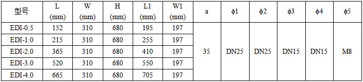 1、给水:RO产水,电导率<20μs.cm;最好<10μs.cm;