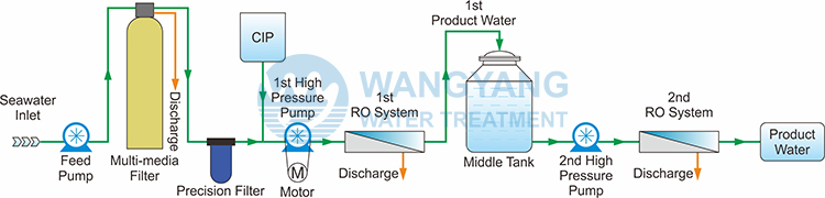 The Combination Type Marine Double RO Seawater Desalination Plant adopts the international advanced reverse osmosis technology and is designed by optimizing the system.