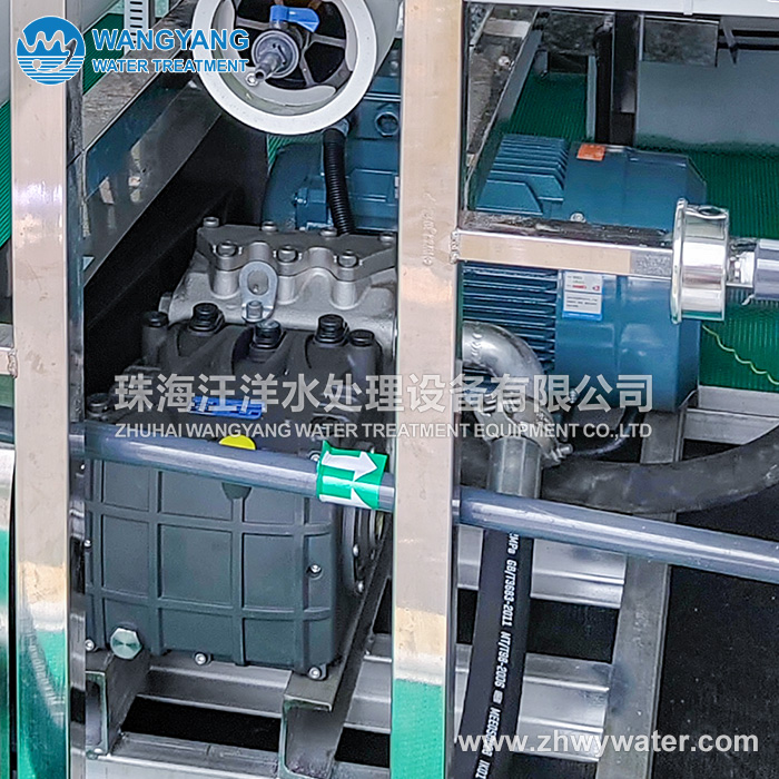 2. Low-pressure shutdown protection. When the pre-treatment water supply is insufficient and the high-pressure pump inlet pressure is lower than 0.05MPa, the protection action will be automatically stopped and an audible and visual alarm will be issued.