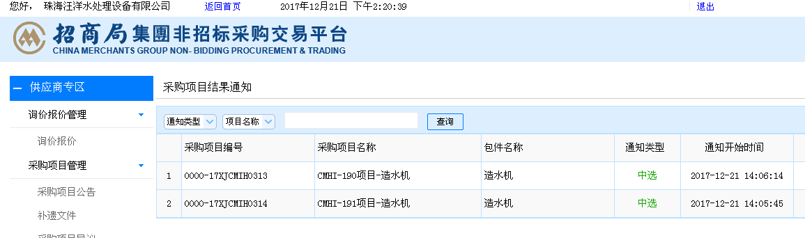此次中标,不仅仅体现了我司综合实力强大,更是对我司产品质量的一个肯定。另外我司不仅仅做海水淡化设备,在纯水处理设备、中水回用设备、污水处理设备、锅炉水软化设备、地下水苦咸水处理设备等水处理都处于行业水前列。