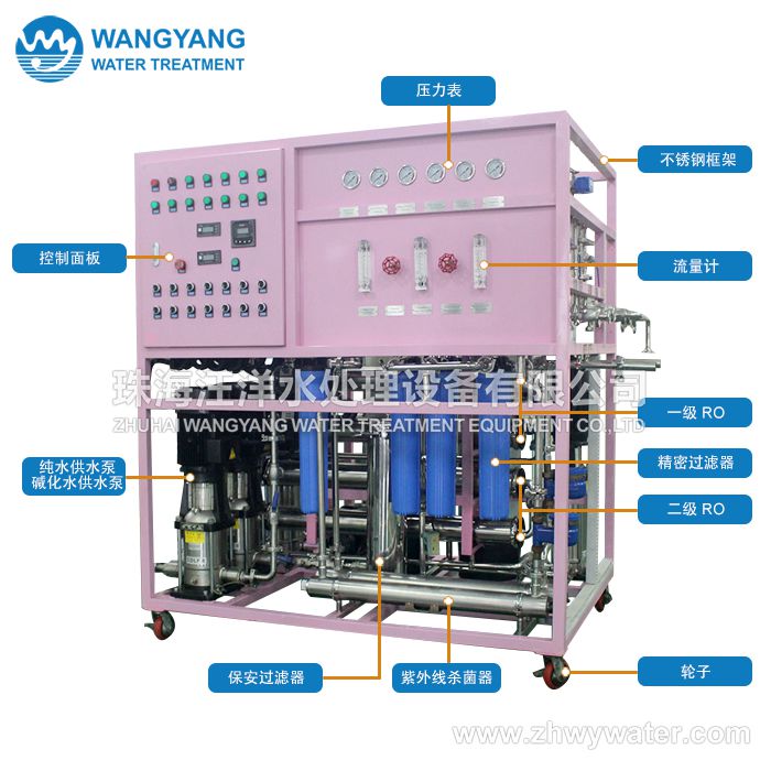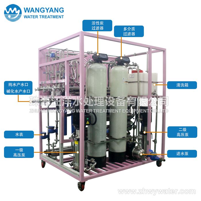 采用二级反渗透技术,产水分为碱性水和纯水,可按客户要求定制。