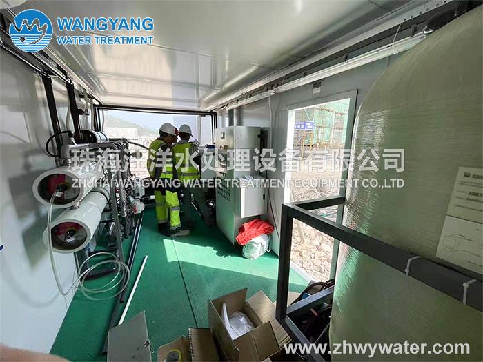 72吨/天集装箱式海水淡化设备客户现场,生产淡水用于水产养殖孵化。