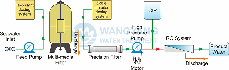 | High pressure pump | Feed pump & Y-type filter | Scale inhibitor dosing system |